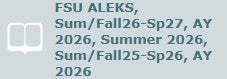 • Select FSU ALEKS, Sum/Fall26-Sp27, AY 2026 by clicking on the circle with three dots and choose “Apply access.”  If you do not see the box, click "Add Class" and then enter this 10-character class code: UKXG3-C9VDV (then proceed to apply access).