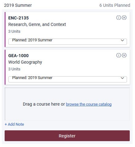 It is recommended that students plan at least one year in advance. However, you may plan as far ahead as you like, even all the way through to your last semester.