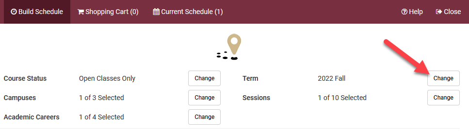 On the Build Schedule tab, select your filter values for Term, Campus, Academic Career, and Sessions.